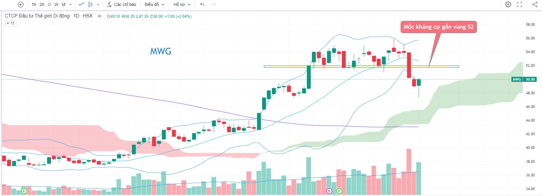 Tương tự với MWG, mã này có khả năng quay lên test lại vùng kháng cự quanh giá 52(vùng đứt gãy). Với MWG theo quan điểm của anh em nên chờ thêm, vì hiện tại MWG chưa cho điểm cân bằng trở lại, và phiên hồi phục hôm nay có thể chỉ là 1 phiên hồi kỹ thuật sau 2 phiên giảm rất mạnh. Như anh nói với những cổ phiếu giảm mạnh chúng ta nên chờ mua khi cổ phiếu có đáy thứ 2. Đáy đầu tiên của cổ phiếu thường dành cho những người trading, đánh T+, lướt T0,…ăn nhịp bật lại khi cổ phiếu giảm mạnh.