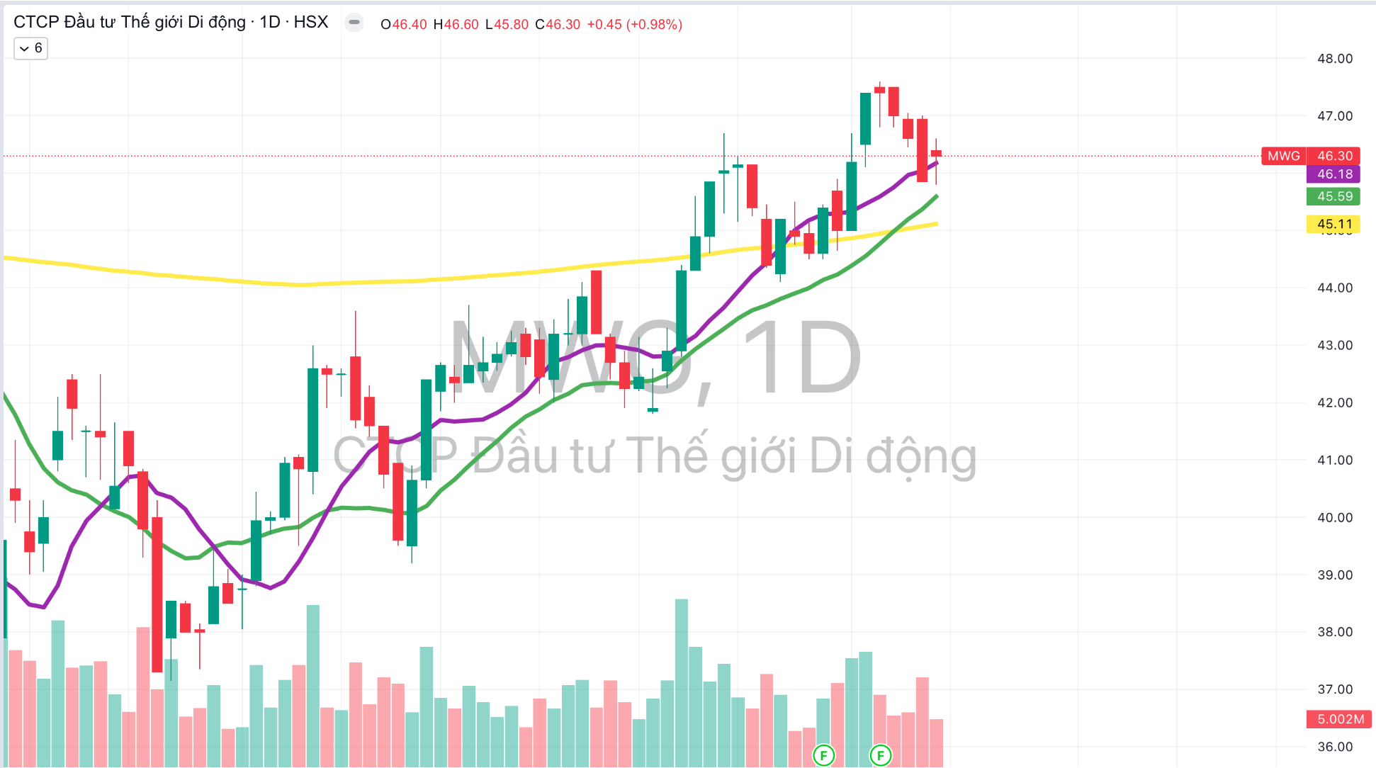 Về MWG, sức mua hồi phục đang chậm hơn đối với mảng ICT, cạnh tranh giá tiếp tục gay gắt. Ngoài ra, BHX kh tăng trưởng doanh thu như kỳ vọng
