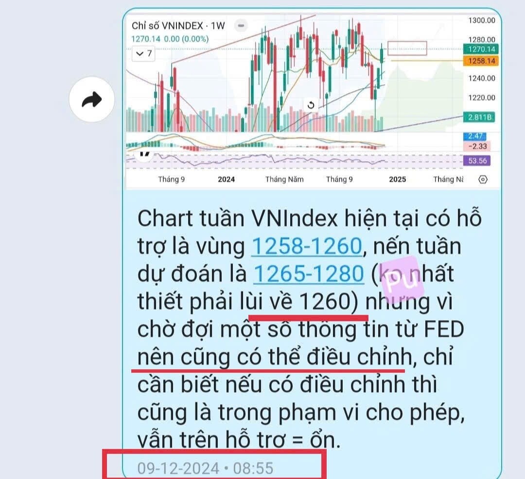 Còn tuần tới đúng dự kiến là giữ trên 1260 cả tuần, ko cần tăng mạnh, thì tuần tiếp theo nữa sẽ tăng.