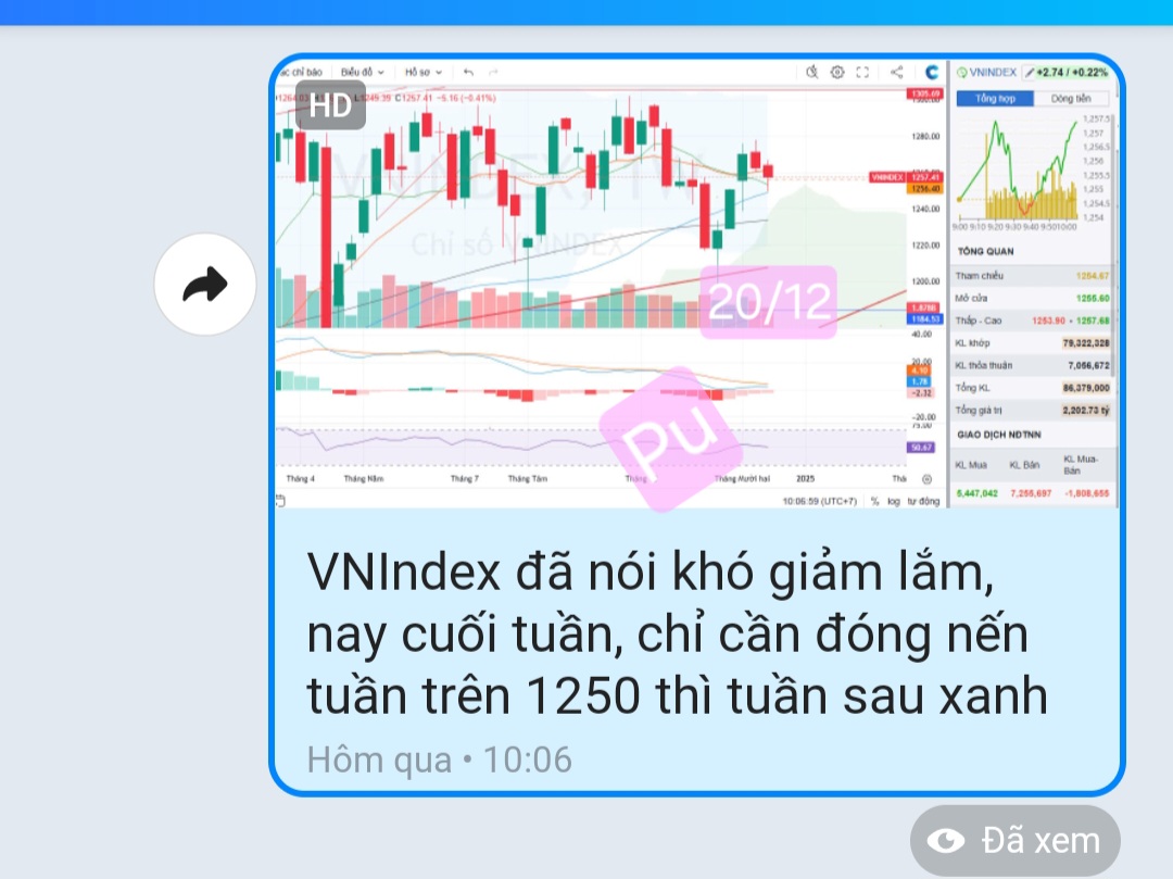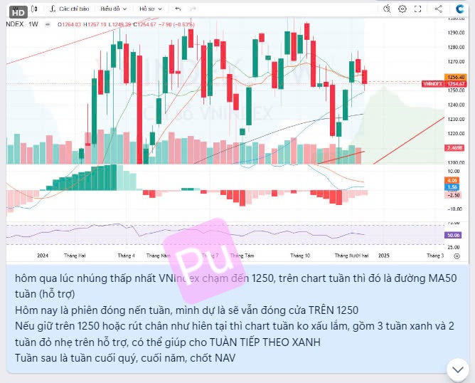 2 phiên giữ, đúng hướng thì hết tuần đều giữ trên 1260 thì tuần sau tích cực. Giờ ngồi im là chính.