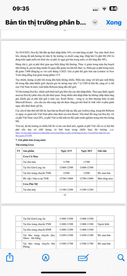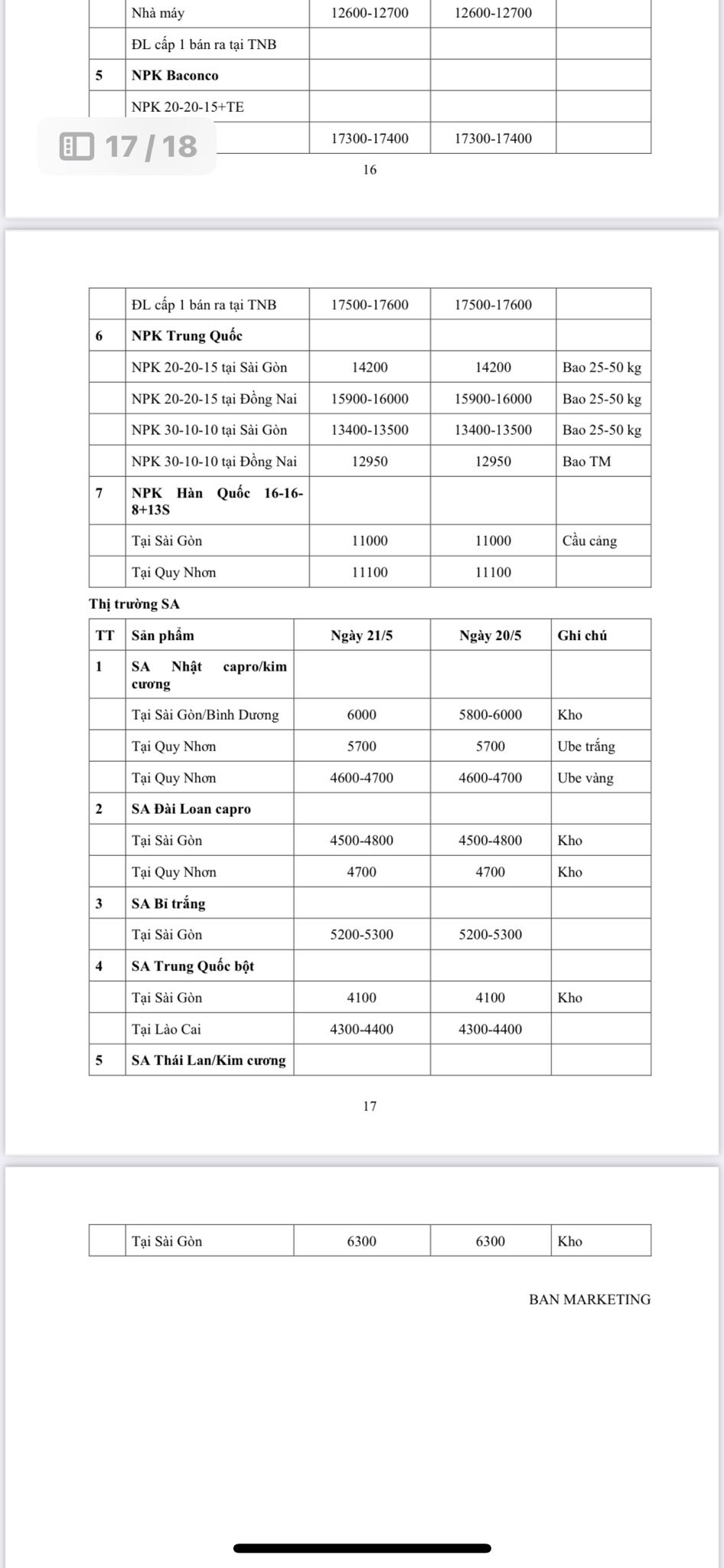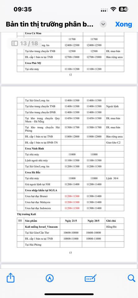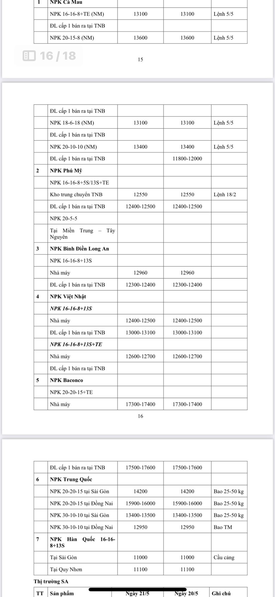 Urea, NPK, DAP,… bla bla bla, tin tưc gì có hết. Cái này có daily, sếp mình lấy 1 ngày ra cho mình coi tổng thê xu hướng, Ae nào kiếm được đọc thì có để ở góc trái hình nha