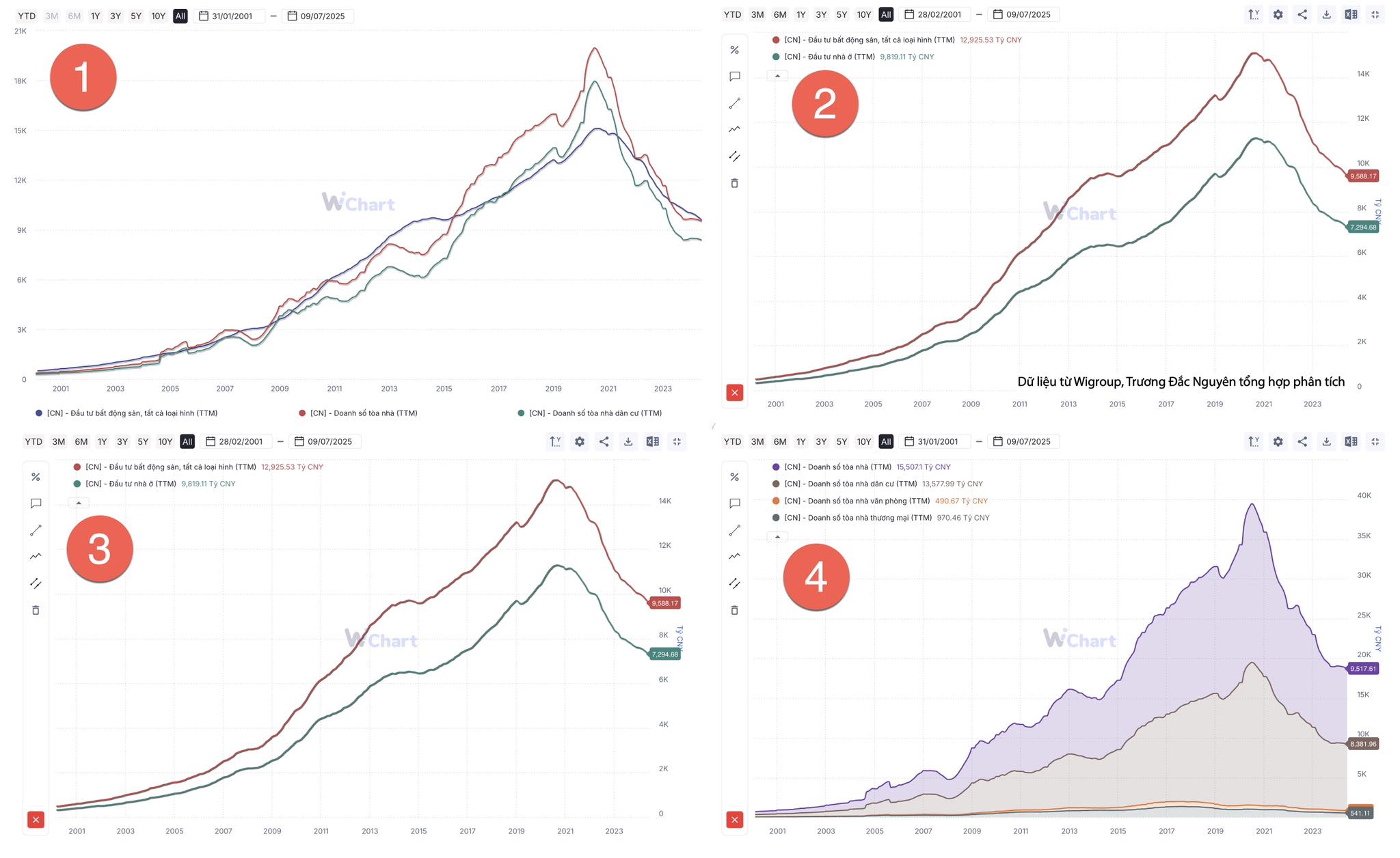 - Câu chuyện bùng nổ và vỡ bong bóng (2001-2025): Từ động cơ tăng trưởng trở thành rủi ro hệ thống (→ Biểu đồ 1 & 3)