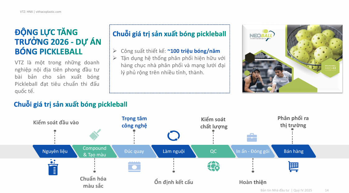 Sản phẩm bóng Pickleball chưa phải mảng chi phối ngay lập tức lợi nhuận của VTZ.