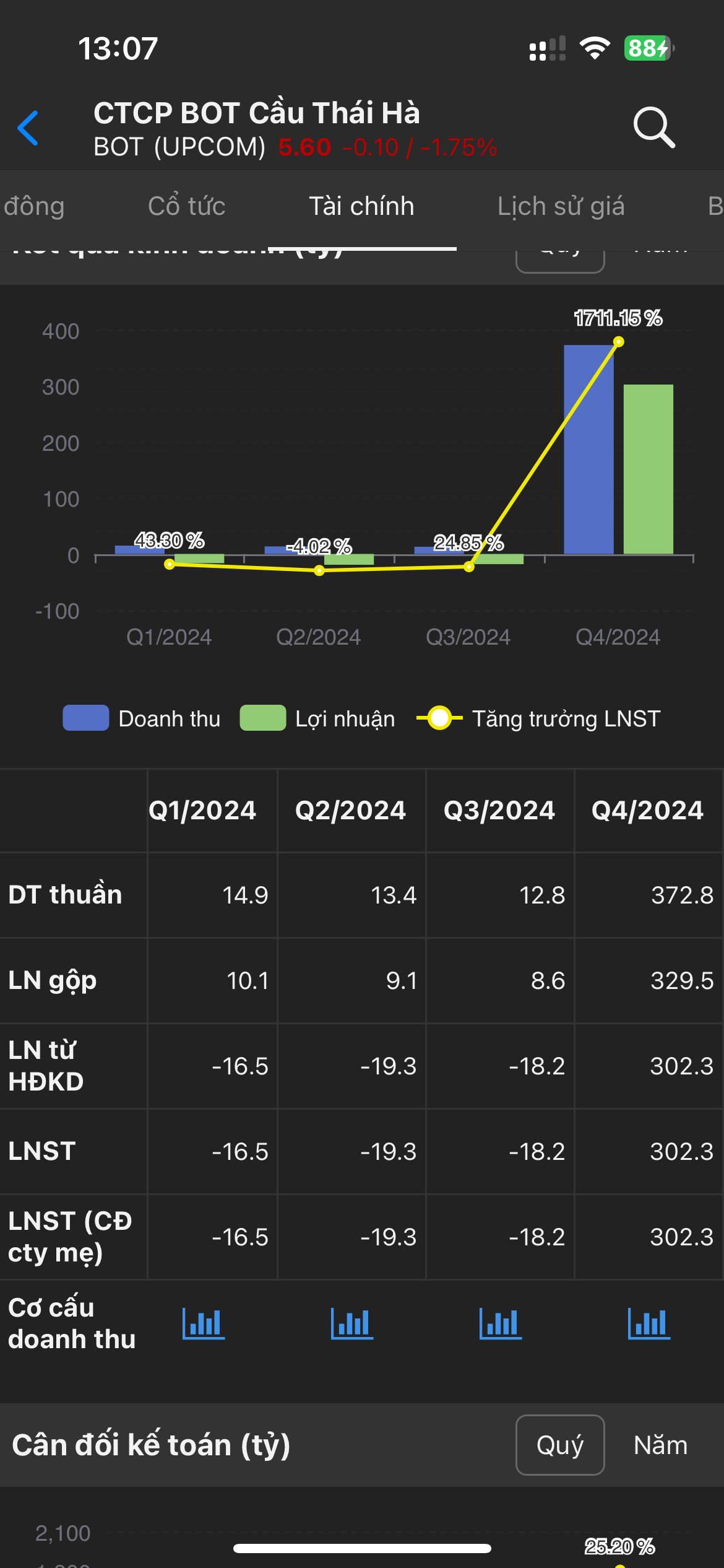Nếu đúng quý 1 2 3 mà ln tiếp tục khủng như quý 4 thì BOT phải giá 30k. Nhưng siêu ln như vậy thì cũng cần xem xét miếng siêu ngon sẽ có nhiều kẻ thèm: doanh thu 372 tỷ mà ln 302 tỷ thì siêu siêu ln. Cú này xoá lỗ luỹ kế mấy chốc thậm chí có thể pht -)