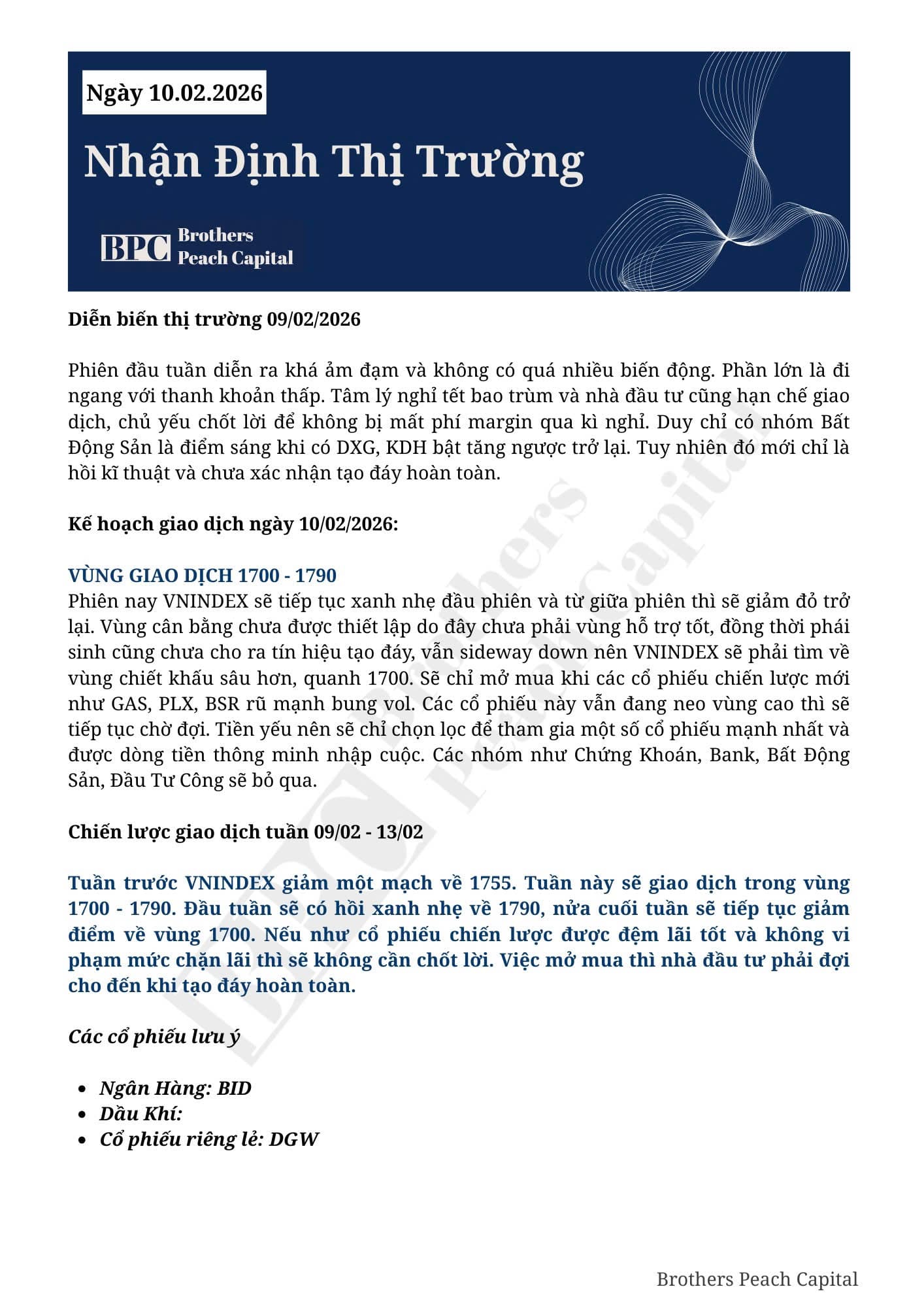 KÍNH GỬI QUÝ ANH CHỊ KẾ HOẠCH GIAO DỊCH NGÀY 10/02/2026