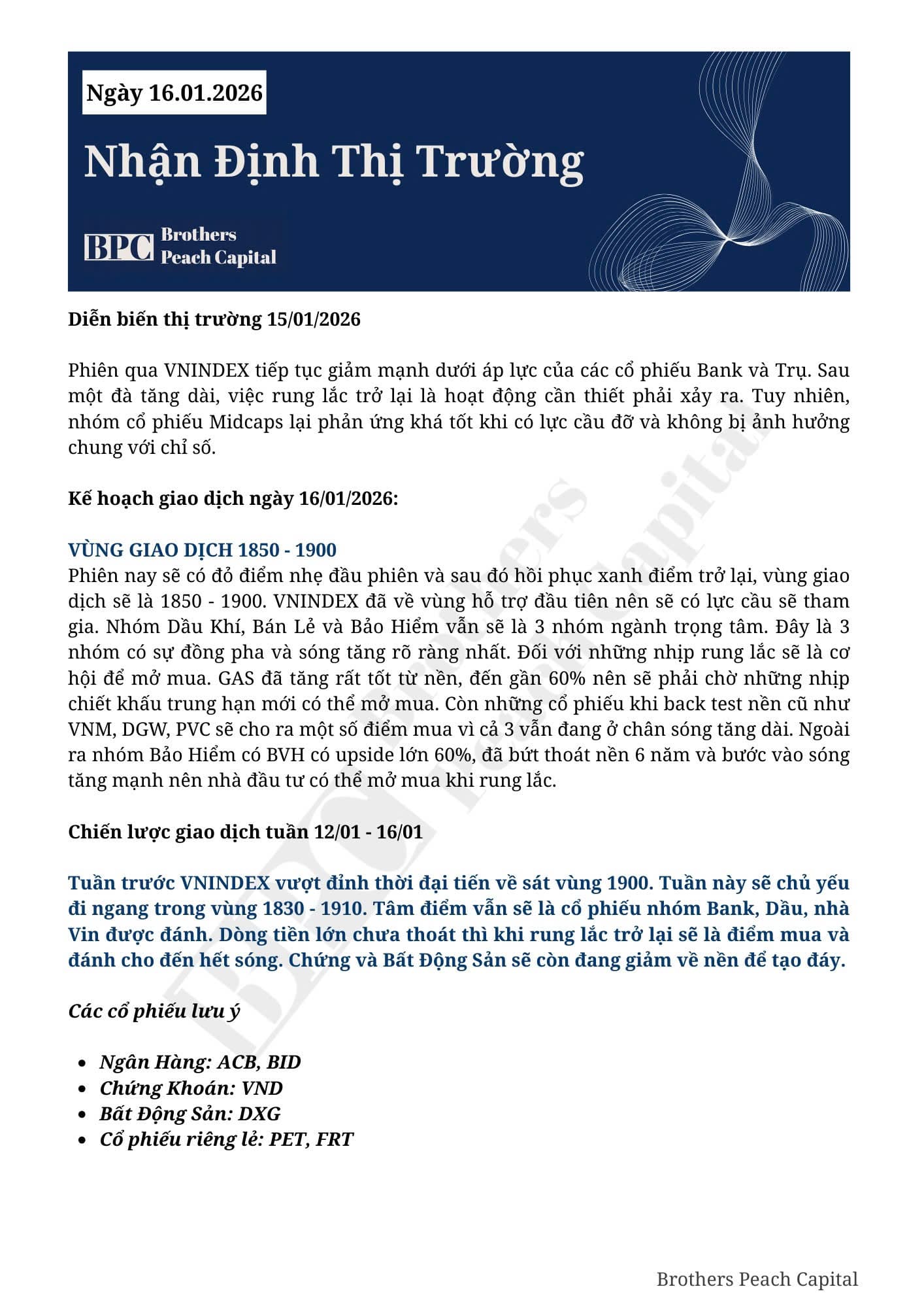 KÍNH GỬI QUÝ ANH CHỊ KẾ HOẠCH GIAO DỊCH NGÀY 16/01/2026