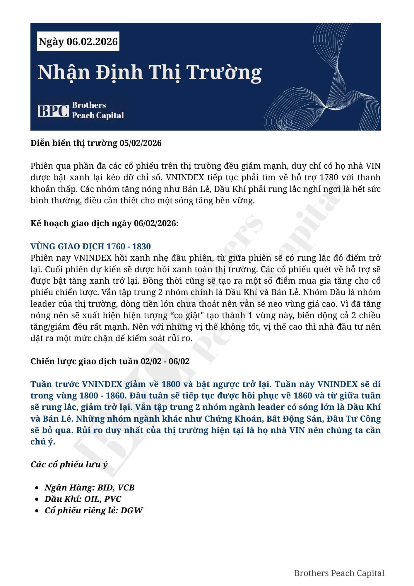 KÍNH GỬI QUÝ ANH CHỊ KẾ HOẠCH GIAO DỊCH NGÀY 06/02/2026