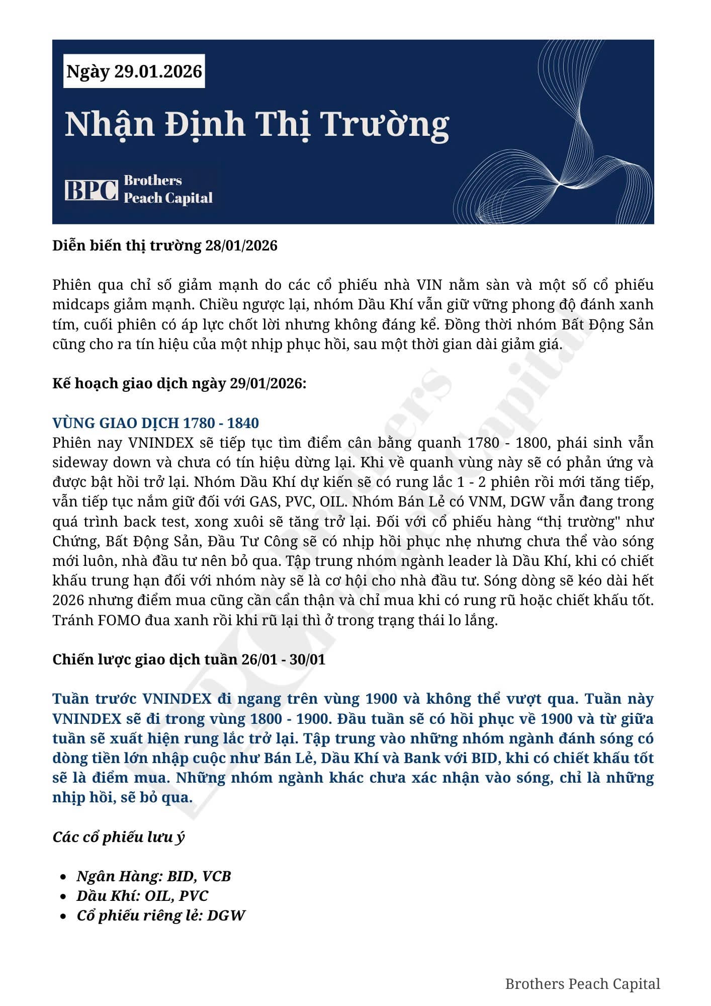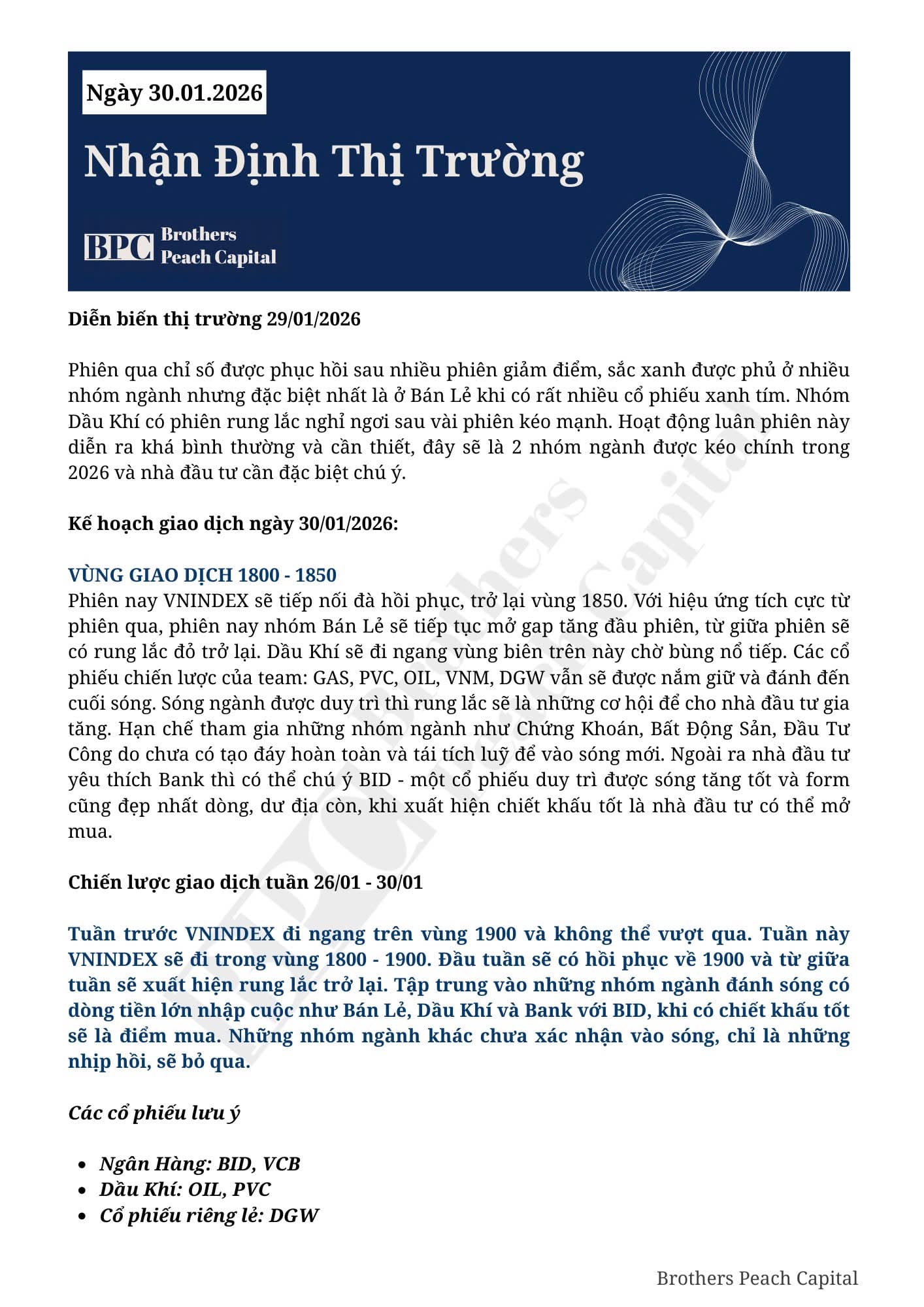 KÍNH GỬI QUÝ ANH CHỊ KẾ HOẠCH GIAO DỊCH NGÀY 30/01/2026