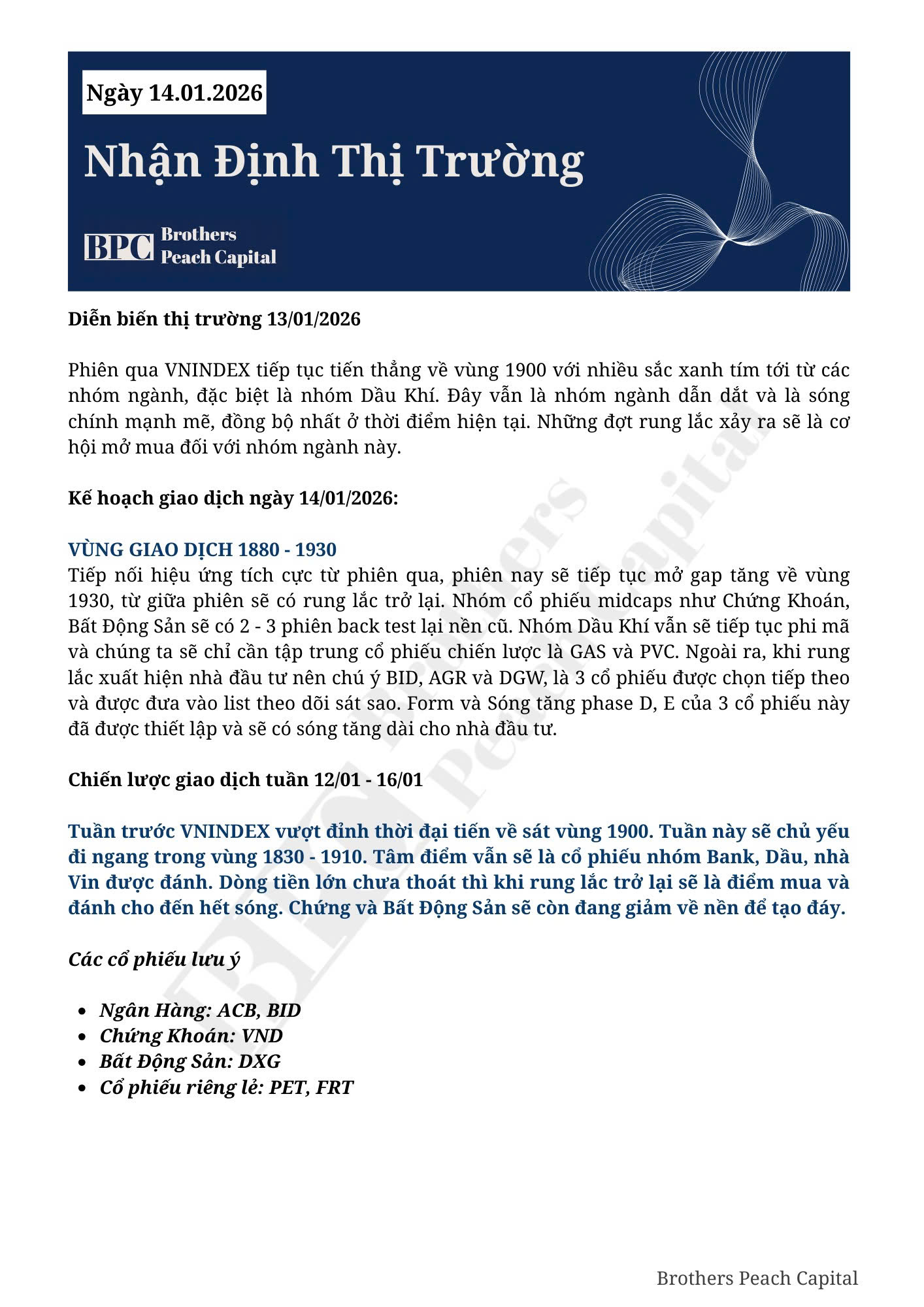 KÍNH GỬI QUÝ ANH CHỊ KẾ HOẠCH GIAO DỊCH NGÀY 14/01/2026