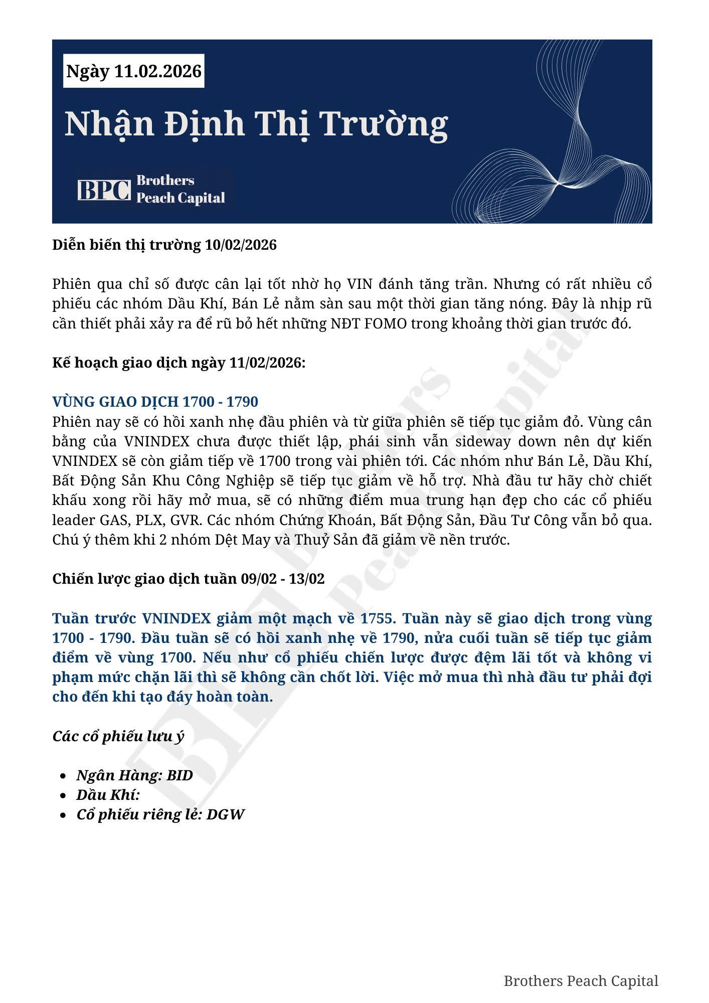 KÍNH GỬI QUÝ ANH CHỊ KẾ HOẠCH GIAO DỊCH NGÀY 11/02/2026