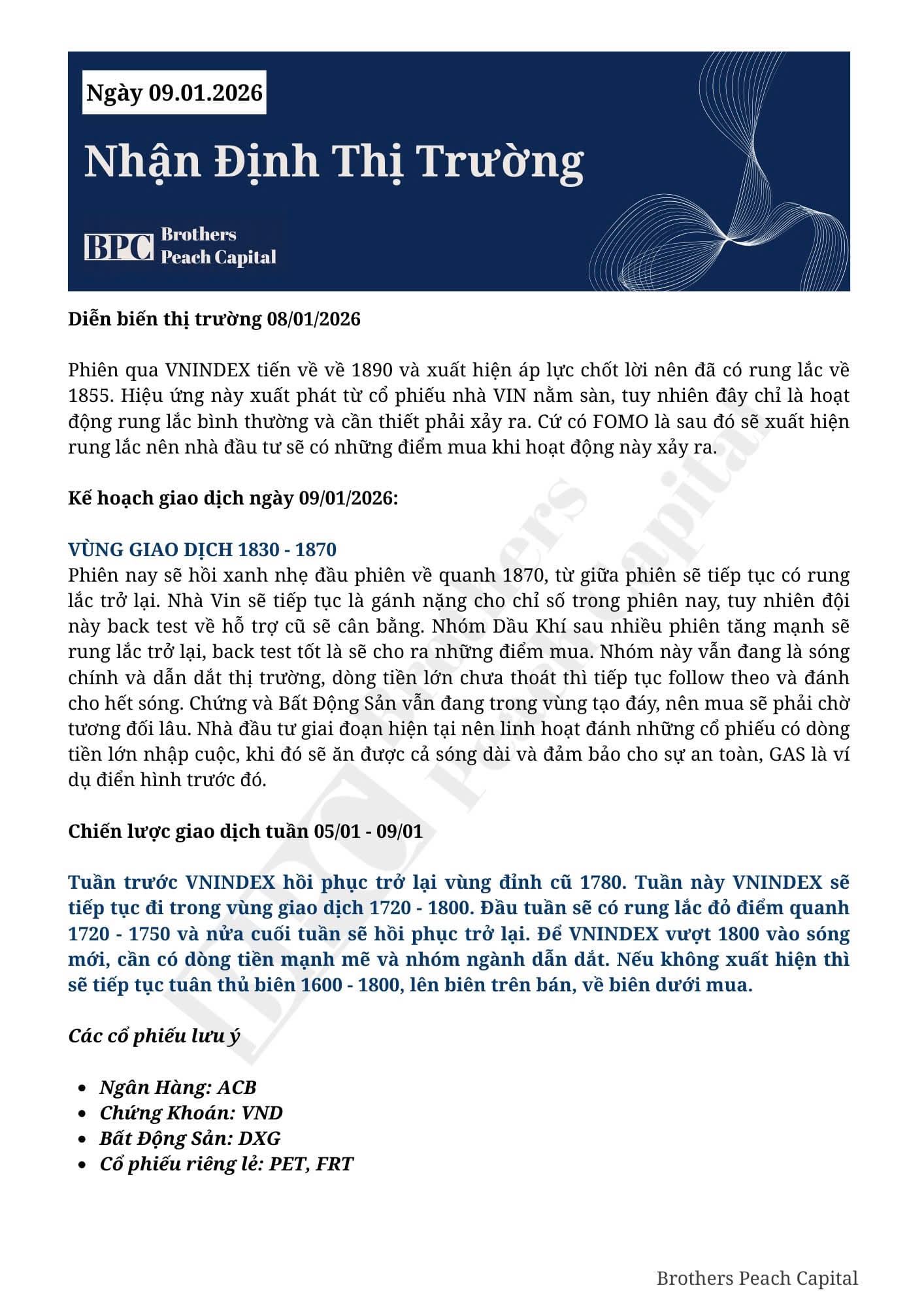KÍNH GỬI QUÝ ANH CHỊ KẾ HOẠCH GIAO DỊCH NGÀY 09/01/2026