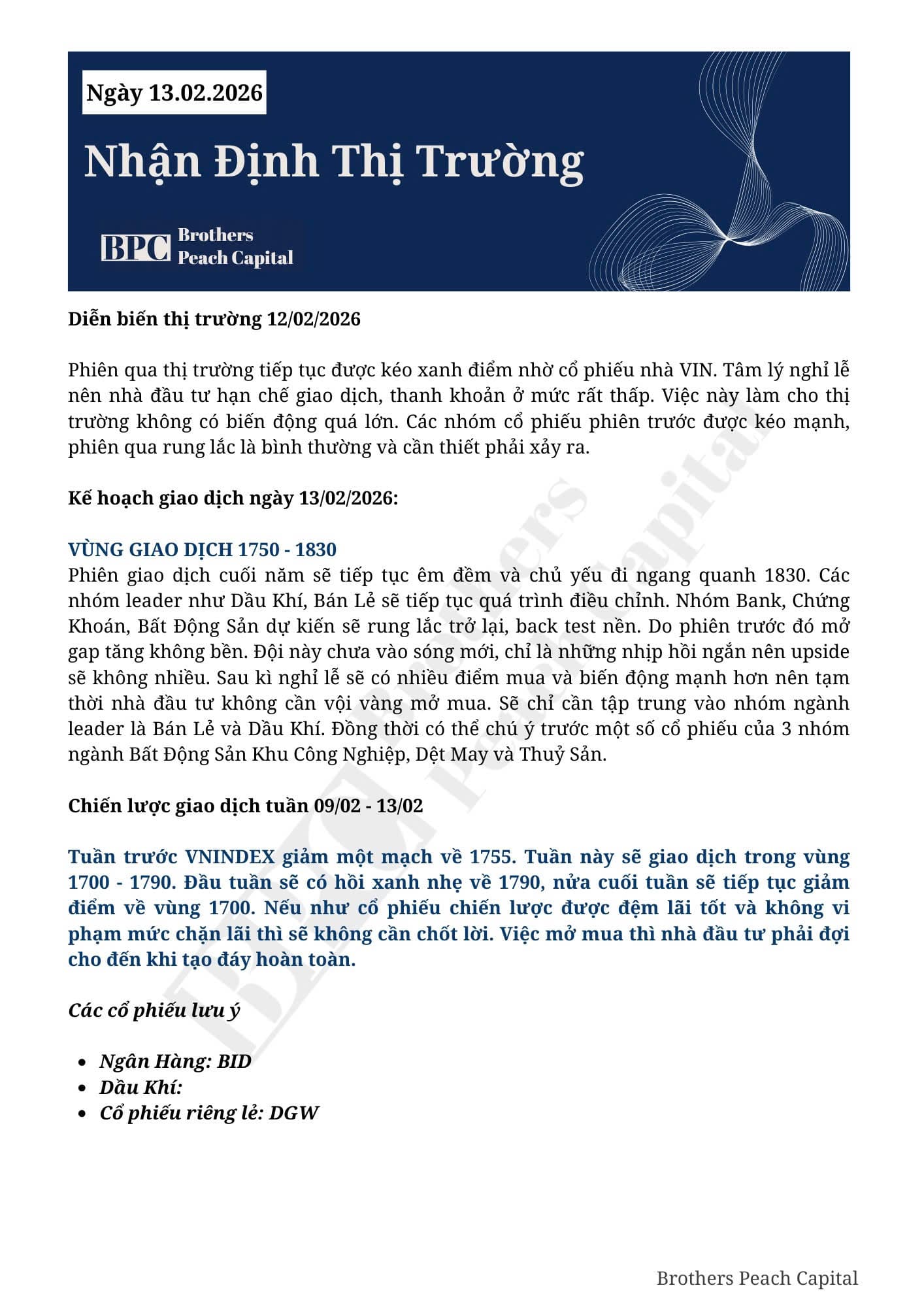 KÍNH GỬI QUÝ ANH CHỊ KẾ HOẠCH GIAO DỊCH NGÀY 12/02/2026