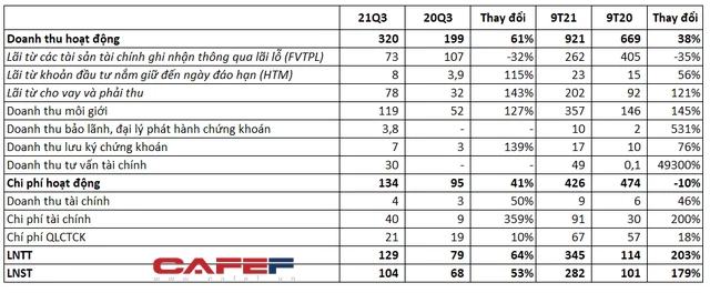 Về tình hình kinh doanh, tổng doanh thu hoạt động trong quý 3 vừa qua đạt 320 tỷ đồng, tăng trưởng mạnh 61% so với cùng kỳ năm trước, trong đó mảng kinh doanh mang lại doanh thu cao nhất cho BSC là hoạt động môi giới, đạt 119 tỷ đồng, tăng trưởng 129%. Kết quả, lợi nhuận kế toán sau thuế quý 3 đạt 104 tỷ đồng, tăng 53% so với quý 3/2020.