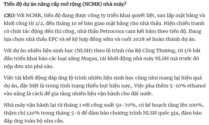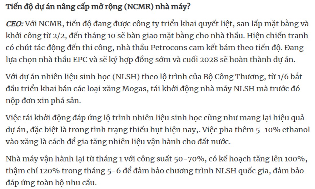 Nguyên nhân tăng trưởng: Biên lợi nhuận mở rộng mạnh mẽ. Giá bán đầu ra (theo giá nhập khẩu thế giới) duy trì ở mức cao, trong khi giá đầu vào (dầu thô trong nước) không bị ảnh hưởng bởi chi phí vận chuyển quốc tế đang tăng cao
