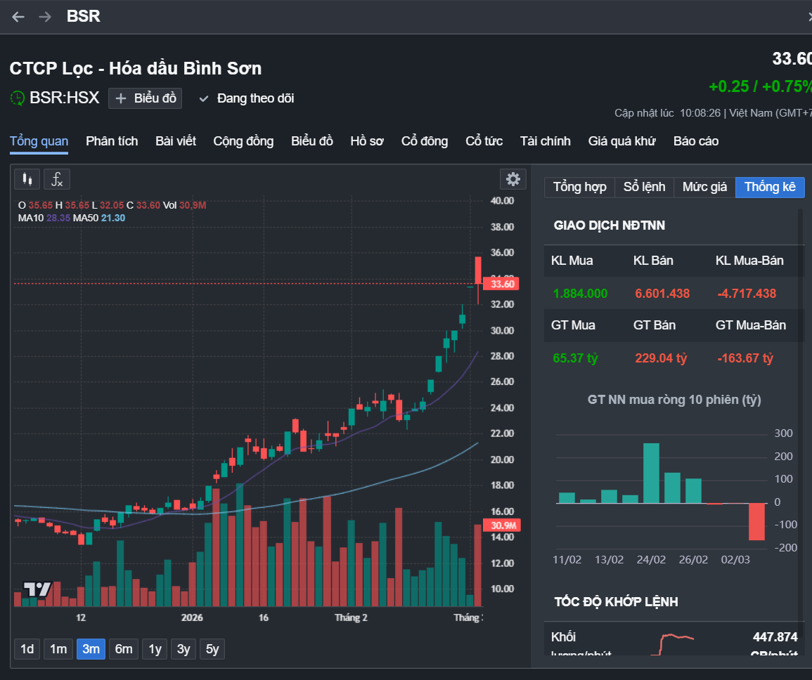 Với mức giá hiện tại khoảng 33.200 đồng/cp (ngày 1/3/2026), P/B của BSR đang ở mức khoảng 2,75 lần — một mức định giá cao, phản ánh kỳ vọng rất lớn của thị trường vào dự án nâng cấp nhà máy và tiềm năng tăng trưởng dài hạn.