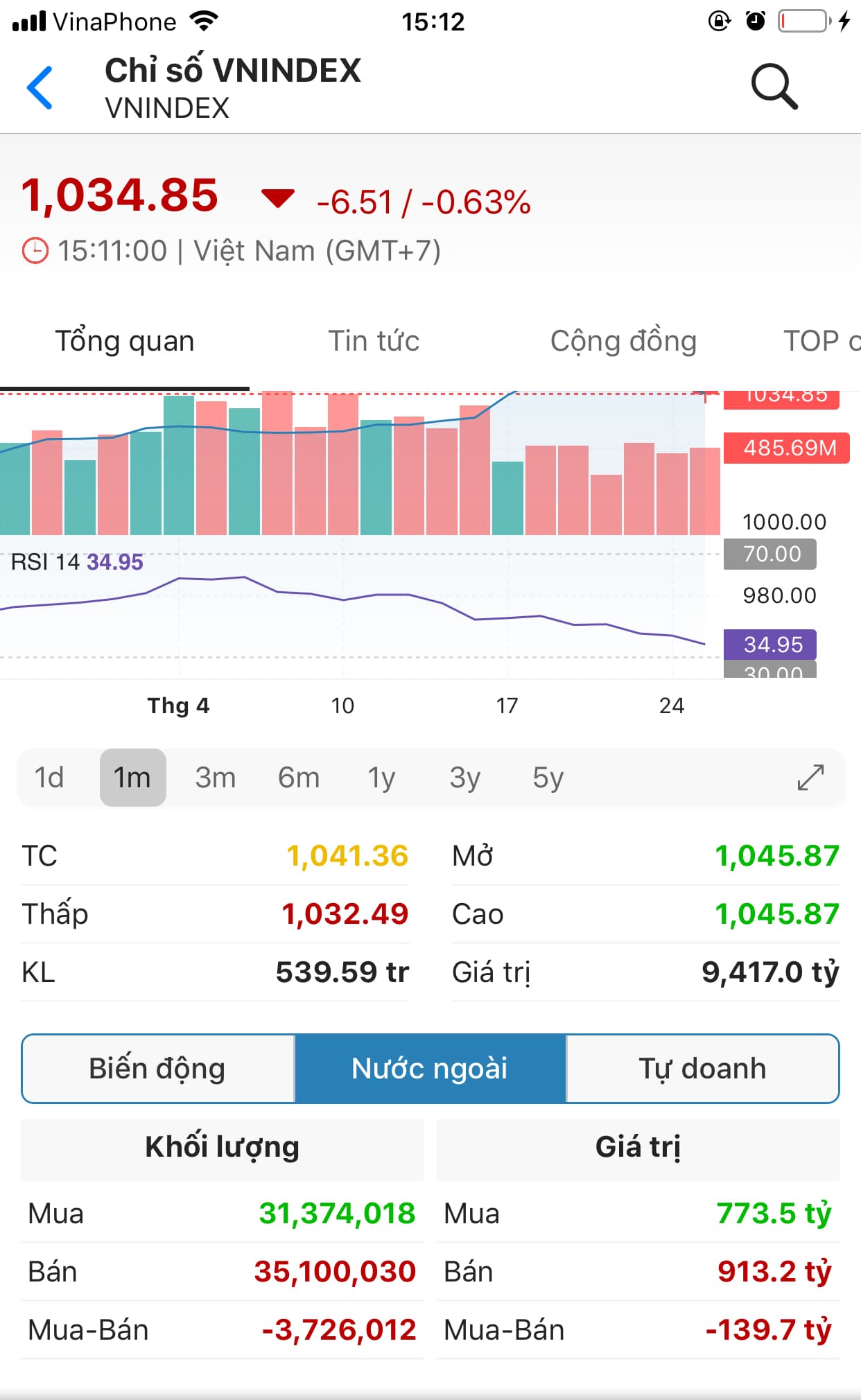Sáng nay mở cửa xanh, 15.9; chắc là đã ngừng rơi