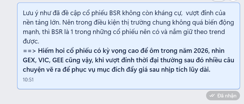Nếu BSR có vùng củng cố mà đi lên sau đó thì đây sẽ là cổ phiếu kỳ vọng 1 nhịp tăng giá như cổ phiếu GEX nhịp 4/2025.