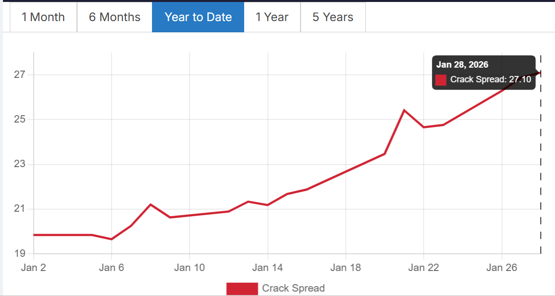 Lâu ròi crack spread mới lại tăng nóng như này, nếu tiệm cận hoặc vượt 30 rồi duy trì thì có thể hi vọng quý 1 BSR lãi ròng hơn 1k tỷ