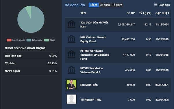 - Cơ cấu cổ đông của BSR cực kỳ cô đặc khi cổ đông lớn nhất là Tập đoàn Dầu khí Việt Nam (PVN) sở hữu tới 92,13% số lượng cổ phiếu. Ngoài ra còn các quỹ ngoại khác sở hữu gần 1%.