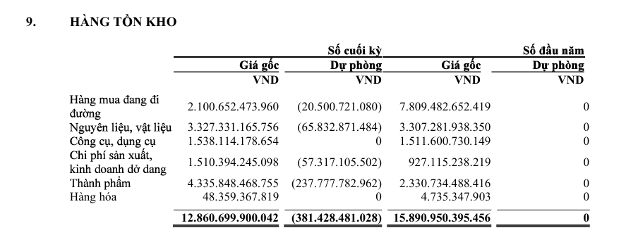 - Hàng tồn kho của BSR giảm mạnh xuống 12860 tỷ chủ yếu do hàng mua đang đi đường giảm mạnh hơn -73,11% so với đầu năm cho thấy hàng hóa BSR nhập về đã tới nơi và đang chuyển sang làm các thành phẩm khác.