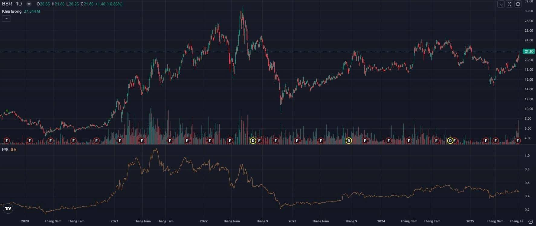 - Với việc crack spread thu hẹp đáng kể và bảo trì nhà máy khiến cho P/E của BSR vọt cao lên mức hơn 100 nhưng sau khi nâng cấp vượt công suất và xu hướng sử dụng xăng dầu tăng sẽ giúp BSR tăng trưởng EPS trong các quý sắp tới.