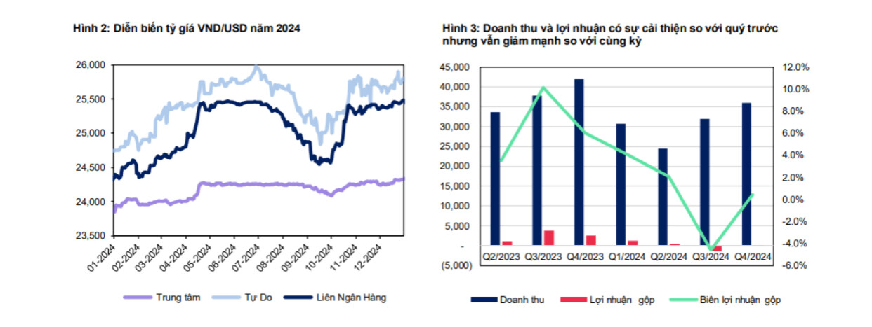 Tính chung năm 2024, doanh thu của BSR giảm 17% svck, trong khi lợi nhuận gộp giảm tới 96% svck. Doanh thu tài chính cũng giảm 16% svck, chủ yếu do tác động từ sự suy yếu của đồng VNĐ. Tuy nhiên, chi phí tài chính giảm 31% svck đã phần nào hỗ trợ kết quả lợi nhuận. Kết thúc Q4/2024, lợi nhuận ròng của BSR giảm 104% svck, kéo theo lợi nhuận ròng cả năm 2024 giảm 93% svck.