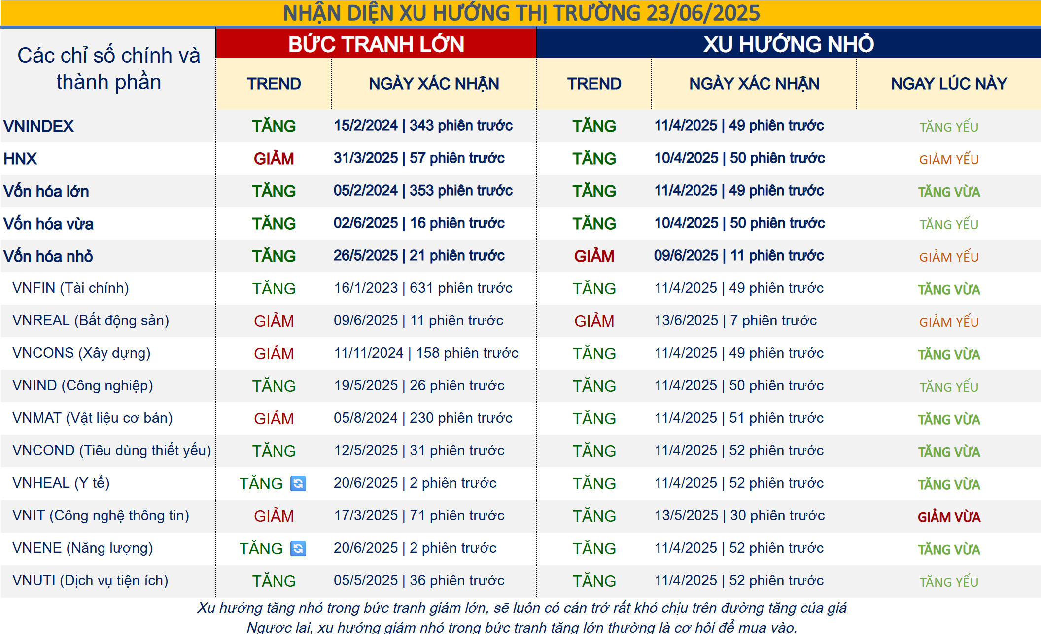 Mình xin phép chia sẻ và xin ý kiến mọi người về một bảng nhận diện xu hướng mà mình đã sử dụng, kiểm nghiệm và điều chỉnh suốt những con sóng lớn gần đây. Các thông tin trong bảng và hình ảnh được lọc từ nguồn dữ liệu lớn.
