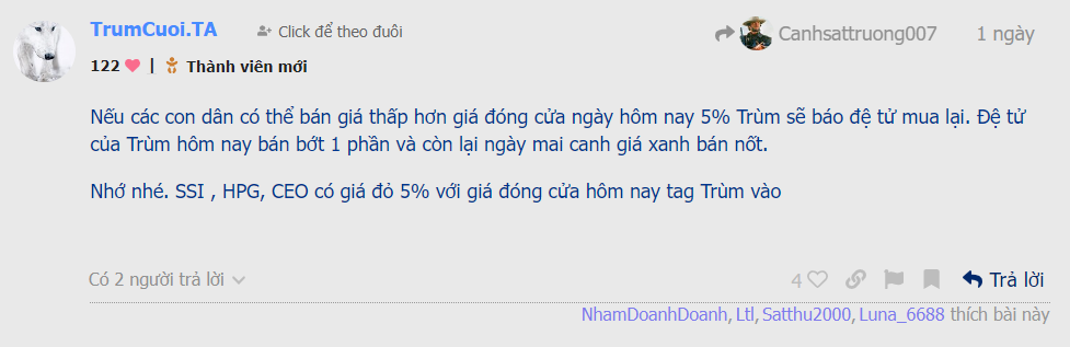 Trùm đã cho đệ tử mua 1 phần ở giá đỏ 5%