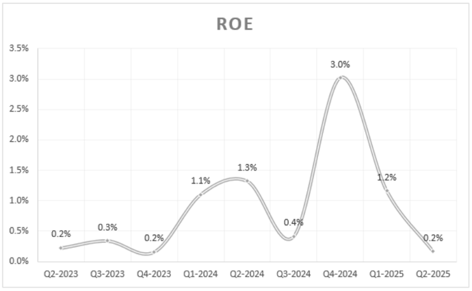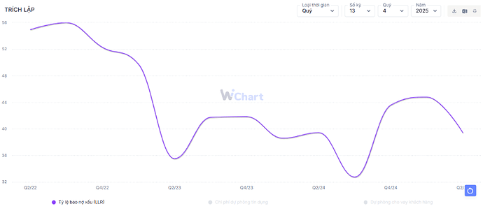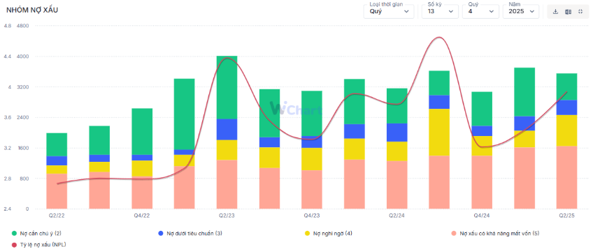 Đối với BVB, chúng tôi nhận thấy ngân hàng này đang có vấn đề trong việc kiểm soát nợ xấu khi tỷ lệ nợ xấu đã tăng liên tiếp 3 quý gần đây và đạt mốc 3,9% trong Q2/25. Đây cũng là con số khá cao khi trung bình ngành chỉ ở quanh mức 2% trở xuống. (Hình 6)