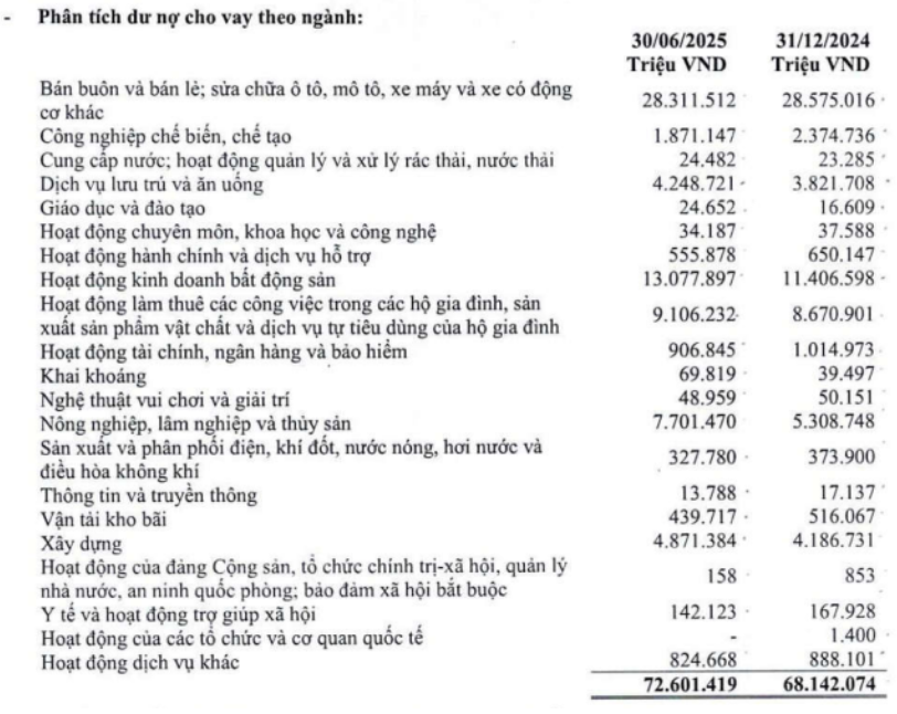 Đầu tiên là nói về tăng trưởng tín dụng. Trong Q2 vừa qua, BVB ghi nhận mức tăng trưởng tín dụng đạt 6,4% - một con số khá thấp so với mặt bằng chung của các ngân hàng. Xét về cơ cấu khách hàng thì tỷ trọng ngành Bán lẻ vẫn ở mức cao (khoảng 39%) nhưng mức tăng tín dụng lại giảm so với đầu năm (-2%). Một số nhóm ngành khác có tỷ trọng bé nhưng đang tăng trưởng có thể kể đến BĐS (+14%), Nông lâm thủy sản (+ 45%). Việc nhóm ngành chiếm tỷ trọng nhưng cao lại ghi nhận mức tăng trưởng âm là lý do chính khiến mức tăng trưởng tín dụng của BVB thấp hơn so với kỳ vọng của thị trường.