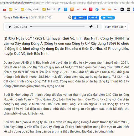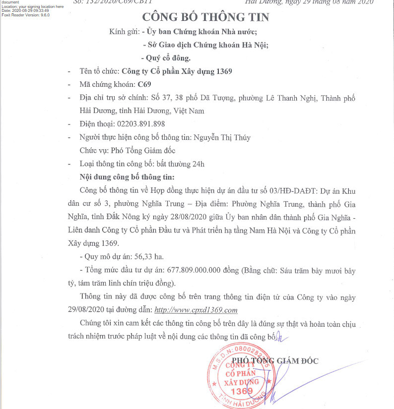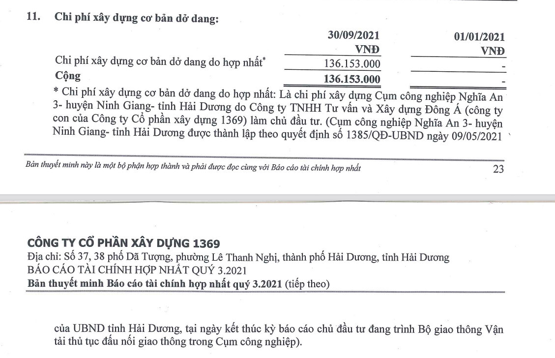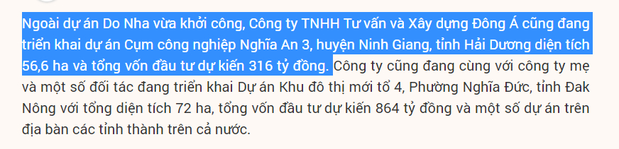 Ngoài ra C69 còn có mảng BĐS KCN Nghĩa An 3 qua công ty con Tư vấn & Xây Dựng Đông Á với diện tích 56.6 ha tổng mức đầu tư 316 tỷ