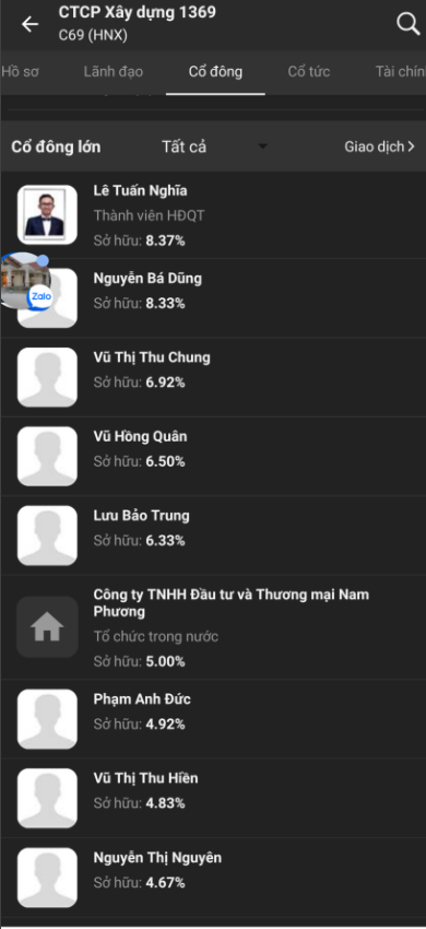 Tỷ lệ sở hữu của C69 cũng rất cô đặc, lượng hàng trôi nổi trên thị trường không có nhiều