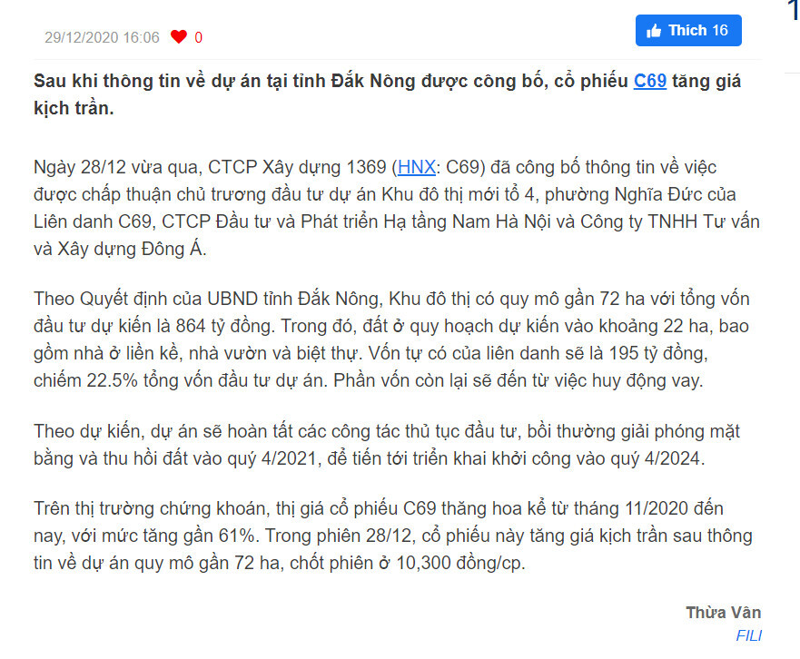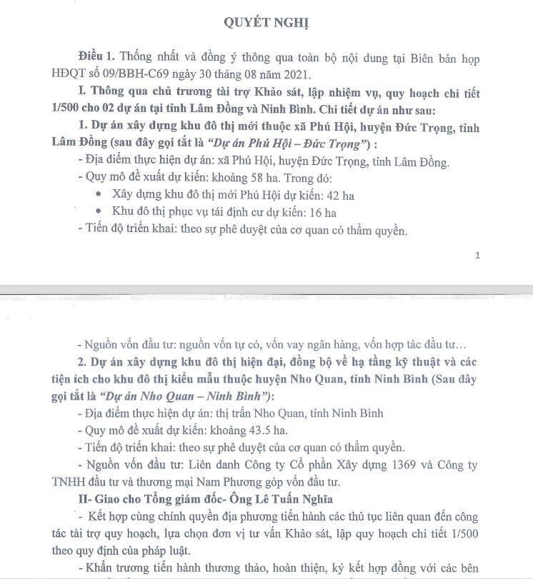 Cuối tháng 12/2020 C69 được phê duyệt khu đô thị gần 72ha tại trung tâm thành phố Gia Nghĩa, Dak Nông với tổng mức đầu tư 864 tỷ. Trong đó có 22ha đất nhà ở liền kề, biệt thự, nhà vườn