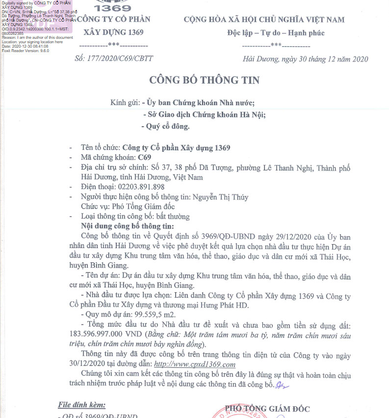 Trong năm 2021 C69 đã hoàn thành nâng vốn điều lệ lên 600 tỷ đồng gấp đôi vốn hóa trước đó.
