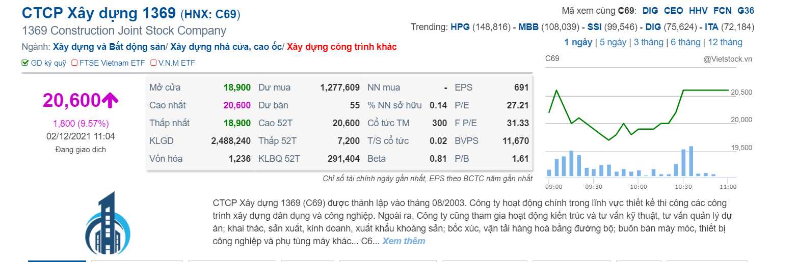 Vốn hóa C69 tại ngày 2/12/2021 đạt 1.236 tỷ đồng => Đang Under value với giá trị thực rất nhiều, tại các mục tiếp theo mình sẽ bới móc tiếp