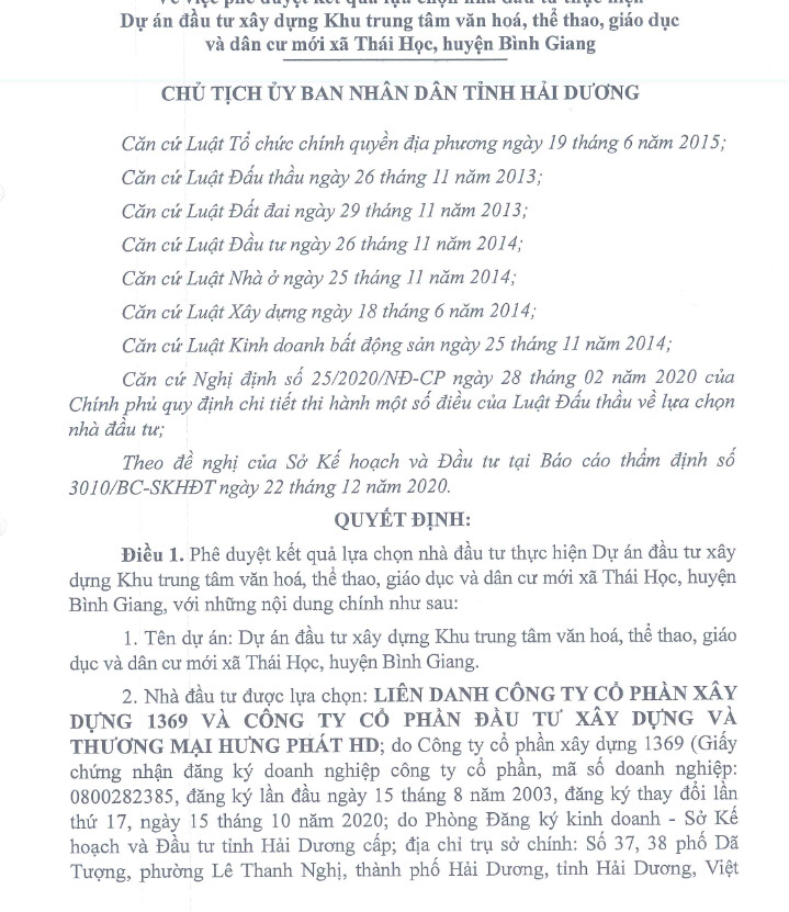 Cũng cuối tháng 12/2020 Liên doanh C69 cũng được phê duyệt dự án gần 10ha tại xã Thái Học, huyện Cẩm Giàng, Hải Dương