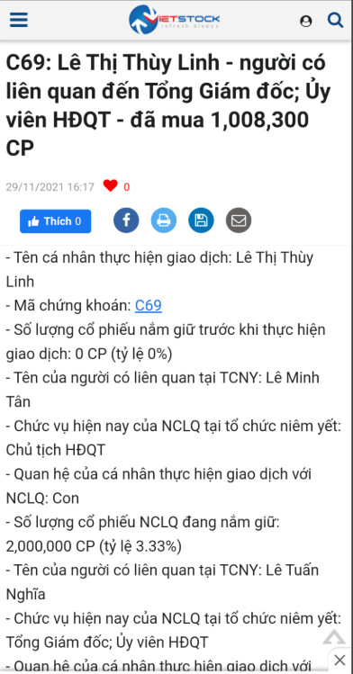 => Điều này thể hiện sự tham vọng của BLĐ & C69 tăng vốn đến thời bùng nổ trong thời gian tới.