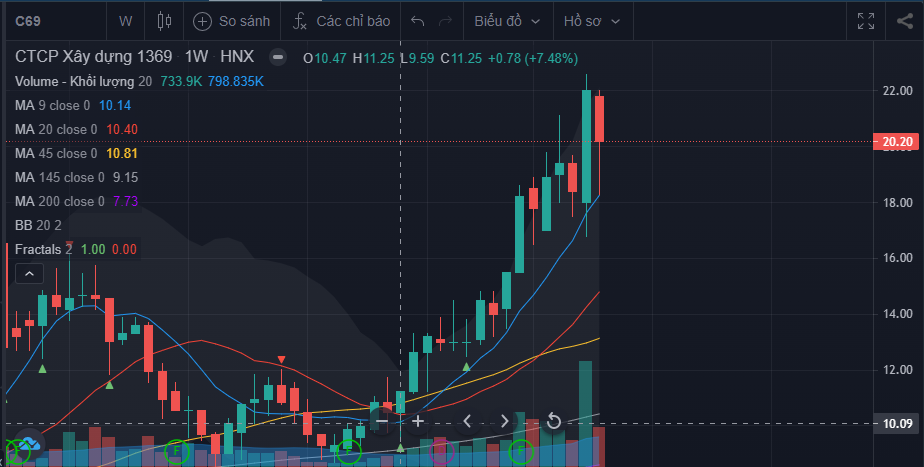C69 nền giá tư 10 đên bh 20, nến tuần bám sát MA9 ĐẸP ntnay, mà nhiều bác còn chê thì đến chịu. Con này chỉ cần nhúng tiền nhỏ vào, BAY XA mua ko kịp ý. Ck cũng chỉ là tiền từ người thiếu kiên nhẫn sang túi người có KIÊN NHẪN.