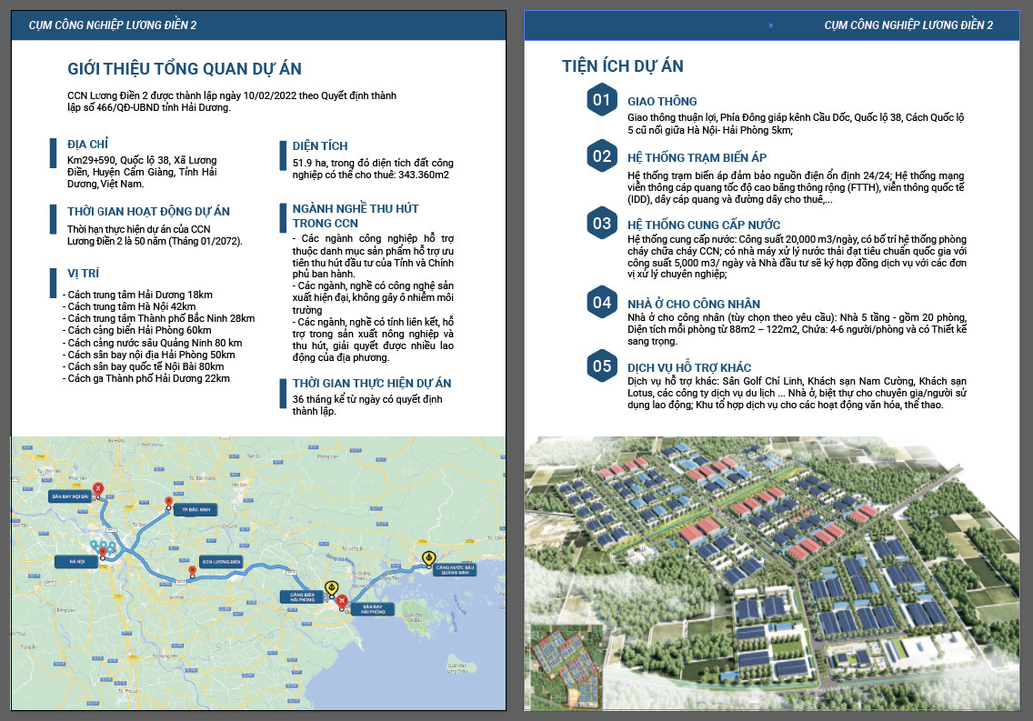 Dự án Cụm công nghiệp Lương Điền 2 Chủ đầu tư: Công ty Cổ phần Xây dựng 1369 Quy mô dự án: 51.9 ha Tổng mức đầu tư dự án: 638 tỷ đồng Vị trí dự án: Xã Lương Điền, huyện Cẩm Giàng, tỉnh Hải Dương. Tiến độ dự án: