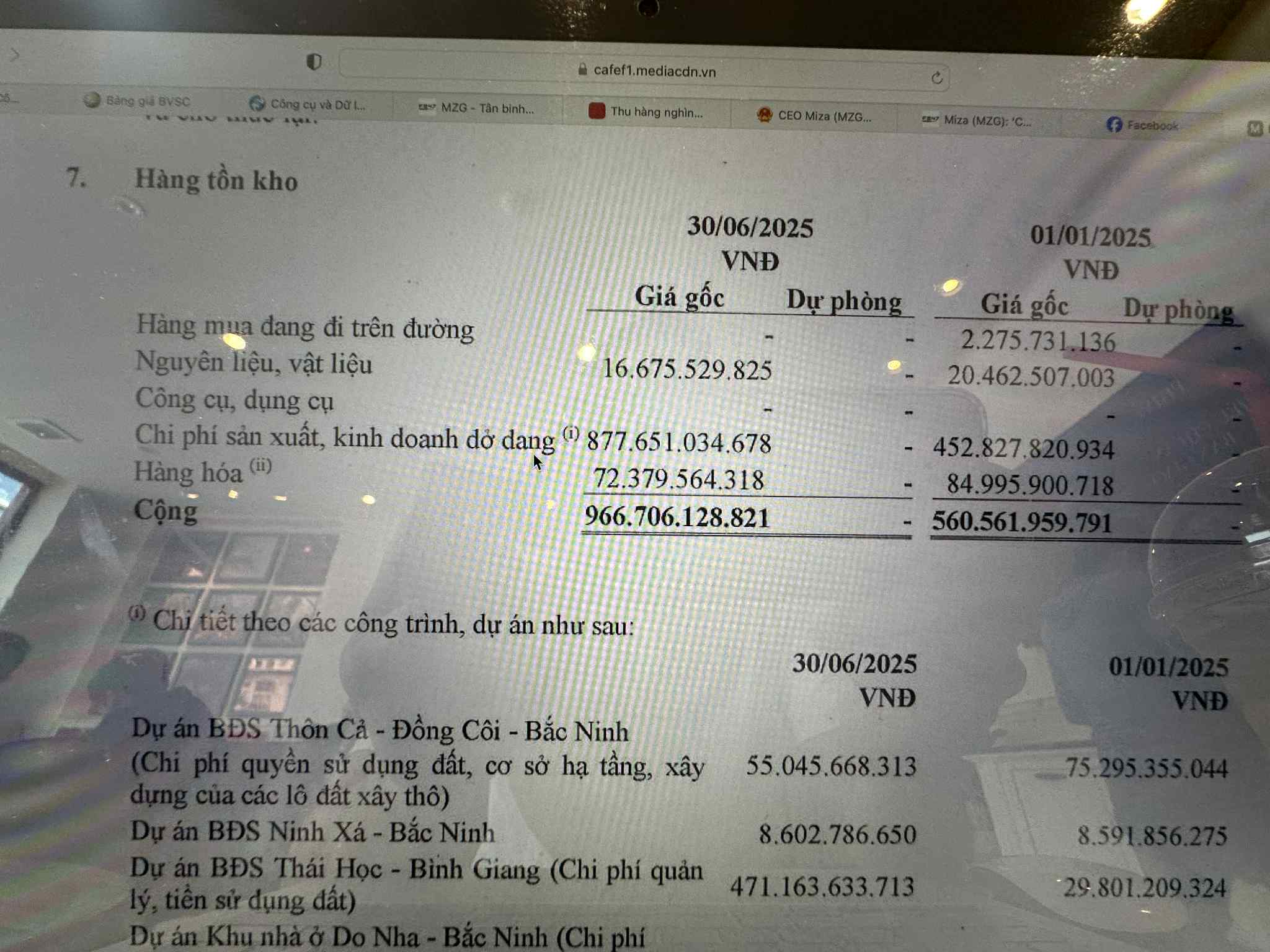1/ Hang tồn kho dự án từ 500 tỉ tăng gần lên 1000 tỉ trong 6 tháng đâu năm 2025 tức là DN đang triển khai số dự án để mở bán trong năm 2025-2026 và con số tồn kho dự án này sẽ con tăng lên mạnh trong tương lai…