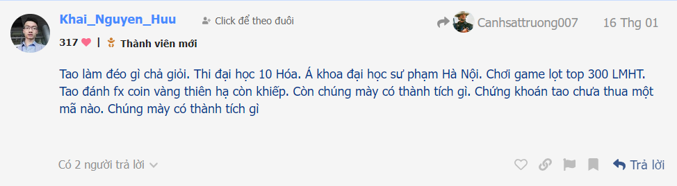 Tao rất công tâm. Tao xem thử nếu cao thủ tao học còn ngáo ngơ tao chửi.
