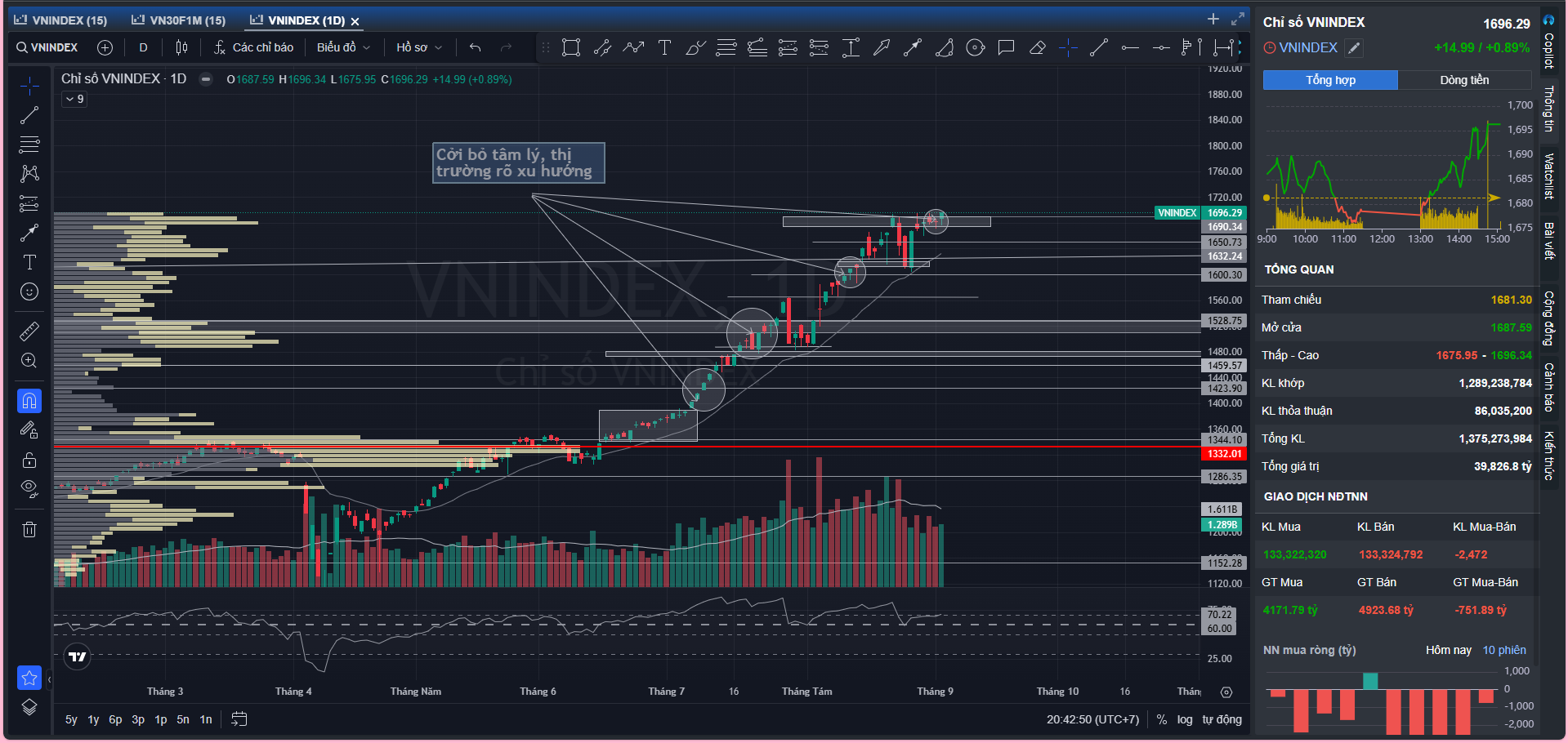 Trước mắt, sau những phiên thận trọng, rung rũ gần đây thì quan điểm cá nhân mình là nhất quán, sẽ vượt 1700, thậm chí về 1750