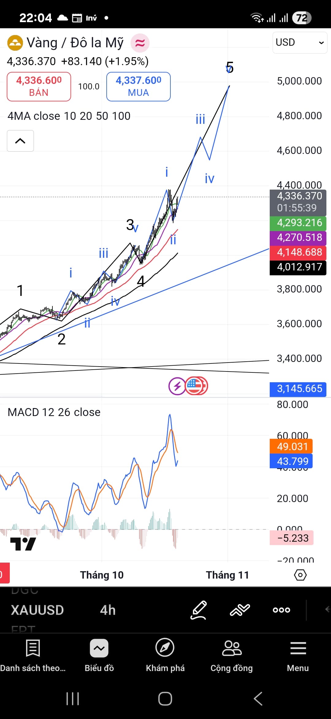Vàng bạc lực cầu bắt đáy mạnh quá. Kì vọng chỉnh lâu 1 chút mà khó rồi. Khung nhỏ sóng 1, 3 đi cấu trúc mở rộng, nếu sóng 5 nhỏ đi mở rộng thì pha này lên 5k luôn với vàng. Để xem đóng nến ngày rồi xem kb vậy
