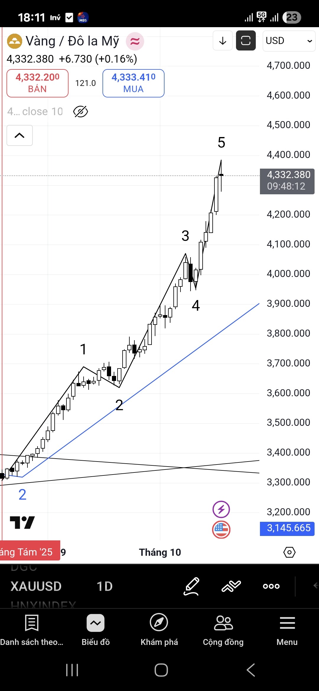 Cậu vàng đi nhanh thật, hơn 150$ từ đỉnh. Chắc về 4k1 mới hồi nhẹ