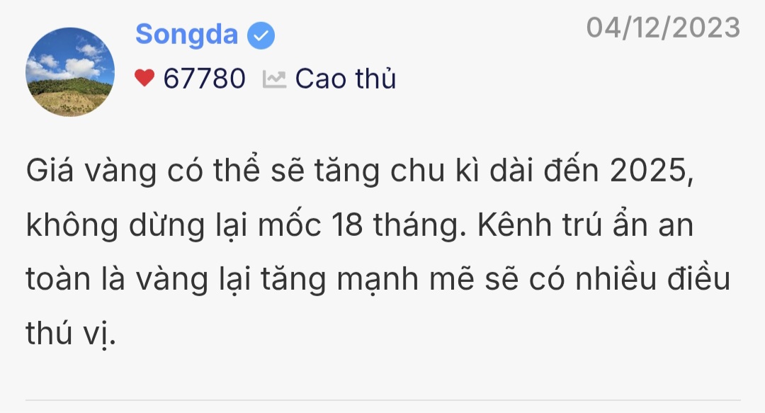 Ngoài vàng chứng thì tôi còn có bđs. Cứ đọc 2 chủ đề bds tôi có nói sóng bđs từ 2024 trở đi. Đỉnh có đến cũng phải tầm 2029 trở ra.