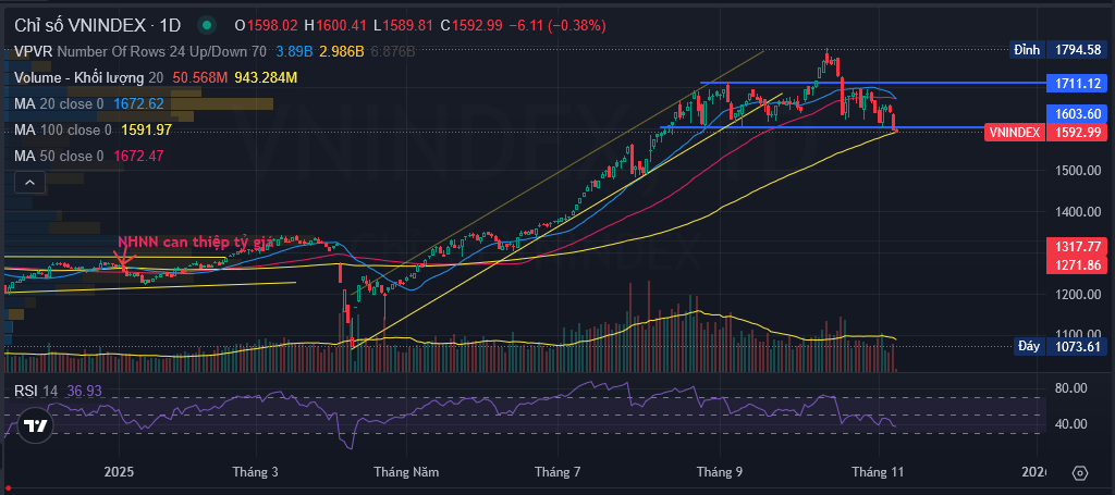 (2) Vùng 1.600–1.620 điểm tiếp tục thể hiện vai trò hỗ trợ mạnh – đây đã là lần thứ 5 chỉ số chạm vùng này rồi bật lên.