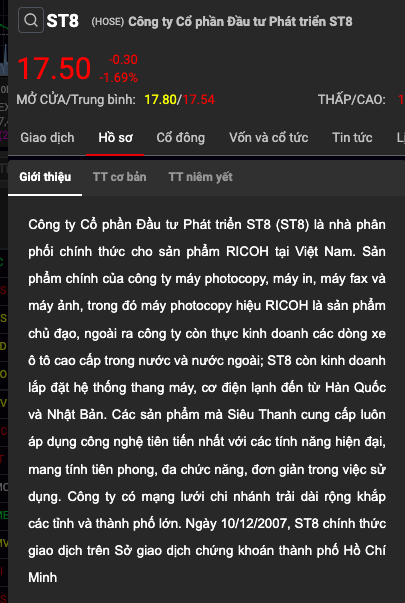 Lợi thế thương mại của ST8 là máy photocopy, máy in.