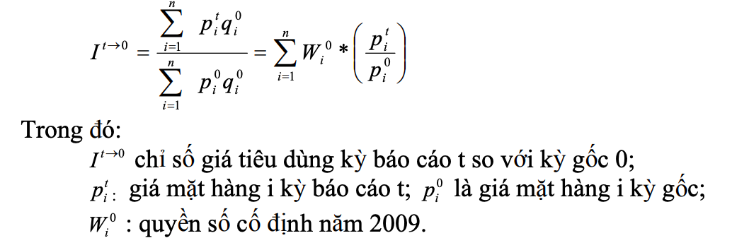 Chỉ số giá tiêu dùng ở Việt Nam thời kỳ 2009-2014 được tính theo công thức Laspeyres phù hợp với thông lệ quốc tế và công thức áp dụng tính CPI của các thời kỳ trước: