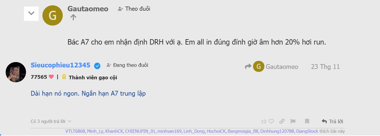 - A7 đã nói về DRH: Về dài hạn nó ngon, còn giai đoạn này đội họ đang gom thì họ nói cho thiên hạ vào để họ phải mua giá cao à!