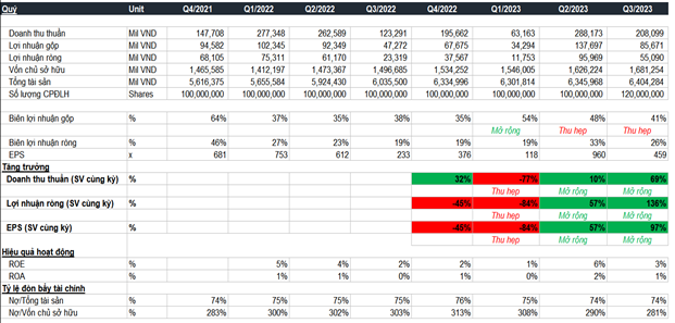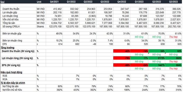 Trong Q4/2023, doanh thu thuần và LNST sẽ lần lượt đạt 313 tỷ đồng (tăng 60,4% svck) và 65 tỷ đồng (tăng 76,2%svck) do mức nền thấp trong Q4/2022.